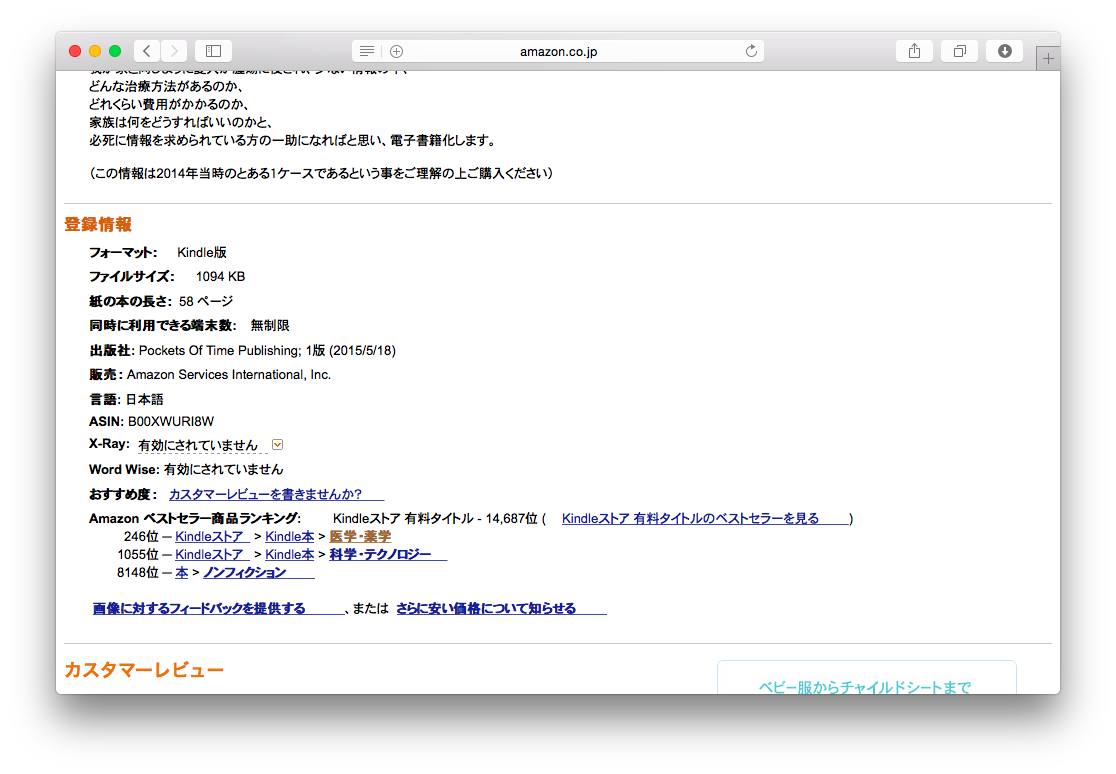 Kindleストアー>医学・薬学カテゴリで246位(2015.5.29 20:00現在)です。