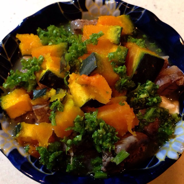 豆腐120g、鶏レバー60g、かぼちゃ40g、パセリ